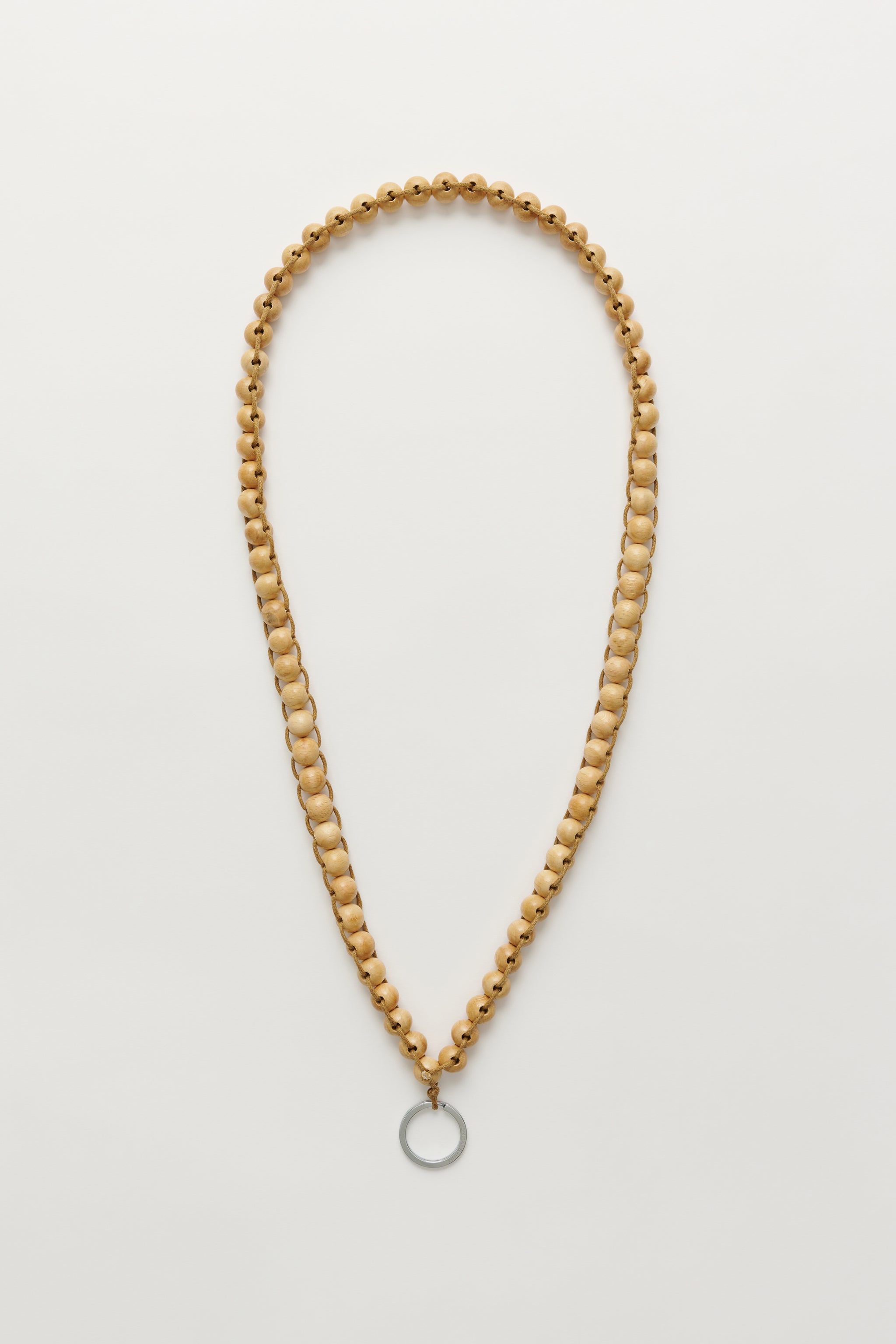 Handcrafted wooden-bead keychain. Featuring a silver metal ring with CMMN SWDN logo engraved. Length of chain is circa 110cm excluding the ring.