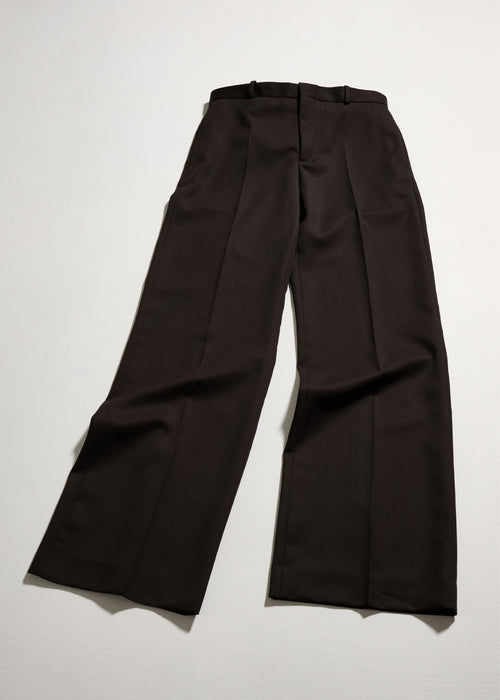 Wide-leg trousers, crafted from a fine Italian high twist wool blend. Featuring a high waist, side seam pockets and jet pocket at the back.