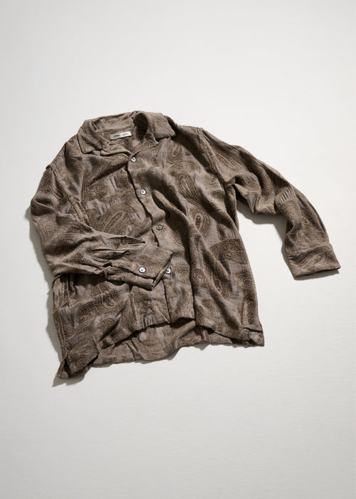 Regular fit shirt, crafted from a distinctive fil coupé fabric with an embroidered paisley pattern. Featuring a camp collar, straight hem and side vents for ease and movement.