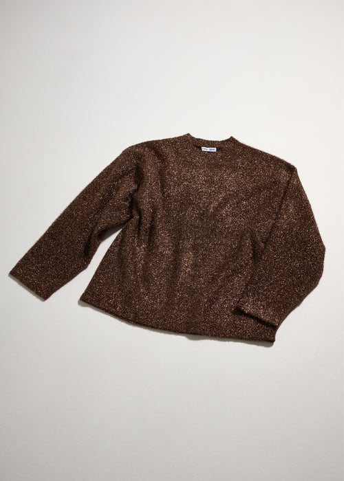 Relaxed-fit sweater with dropped shoulders. Crafted from a soft lurex yarn, creating a metallic effect with soft texture.