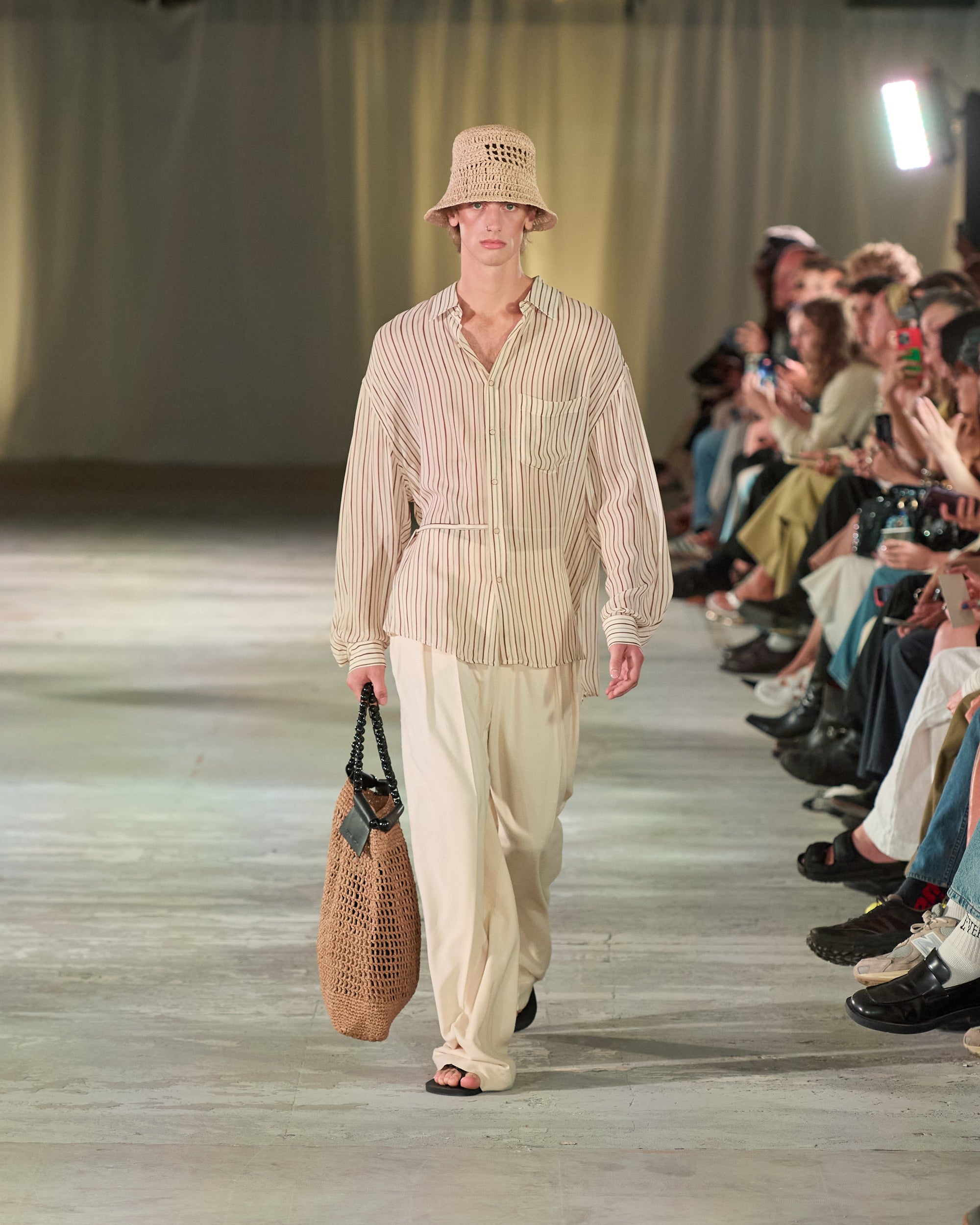 Discover our sheer viscose georgette, featuring a custom printed stripe design developed for CMMN SWDN.
