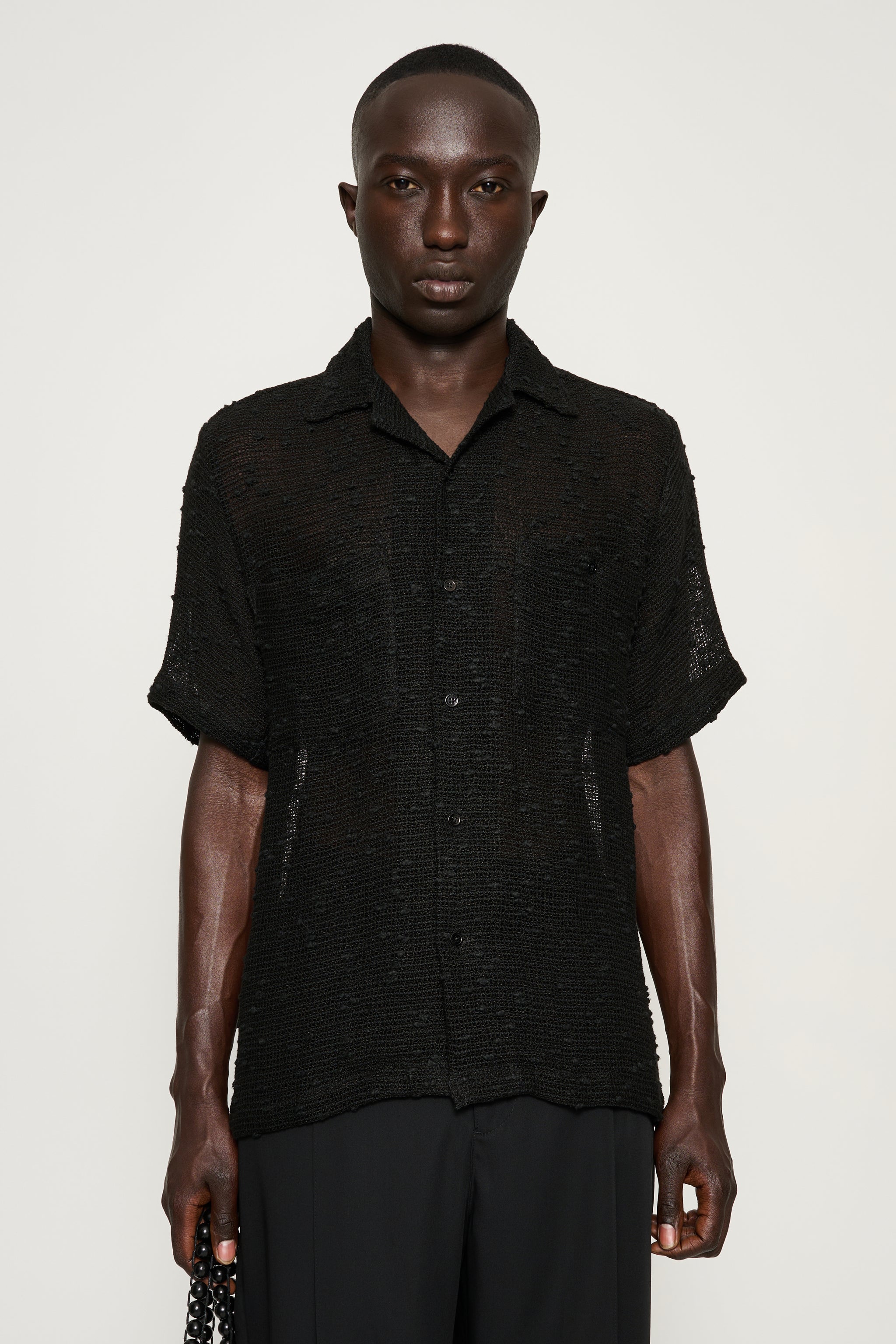 Dexter is a short-sleeve shirt cut in a relaxed silhouette with a structured camp collar. Designed with twin chest pockets, maintaining a clean utilitarian balance. Crafted from a textured cotton-linen blend with polyamide, woven in an open mesh construction that introduces lightness and subtle structure.